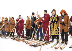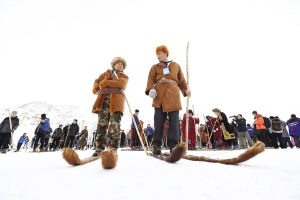 在今年的慶?;顒由希?dāng)?shù)睾每偷母髯迦罕娚碇鴤鹘y(tǒng)服飾,載歌載舞。手拿單杖、腳踏毛皮滑雪板的小伙兒,與腳踩現(xiàn)代雪板、手持雙杖的小伙兒并排站立,分外搶眼。