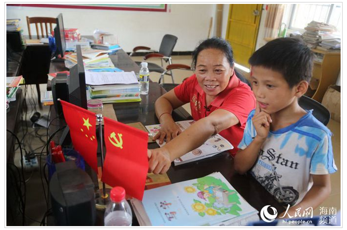 王金花教孩子認(rèn)識(shí)國(guó)旗和黨旗