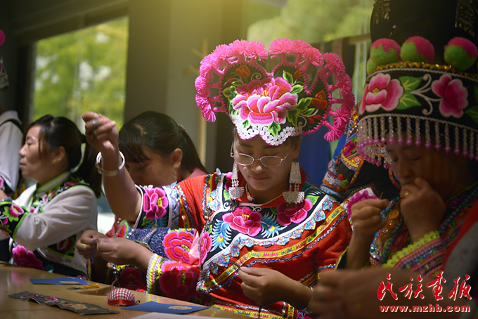 不忘初心,方能遠(yuǎn)行。在上下求索創(chuàng)意民族服飾的同時(shí),盧潔瑩不忘致力于彝族傳統(tǒng)文化的發(fā)揚(yáng)與傳播。2016年起,索玉文化美學(xué)創(chuàng)意有限公司與楚雄市婦聯(lián)、彝繡協(xié)會(huì)共同主辦的,旨在幫助楚雄山區(qū)彝族婦女用傳統(tǒng)手工技藝精準(zhǔn)扶貧的培訓(xùn)項(xiàng)目“彝繡之夢”已開展了兩年?!皠?chuàng)業(yè)不易,要致富也要帶動(dòng)各族同胞一起致富?!北R潔瑩說,“我們的培訓(xùn)班每年都開辦,就是要幫助繡女們走出大山,走進(jìn)大眾的視角,提供一個(gè)給她們展示與發(fā)掘精美彝繡技藝的平臺(tái)。”